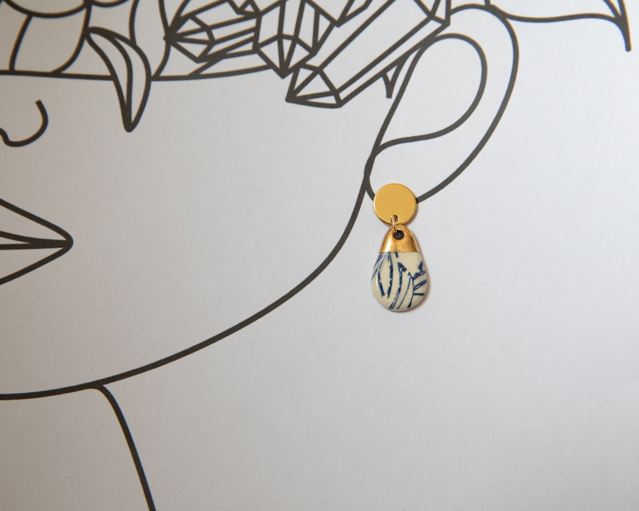Beautiful porcelain earrings with 22k gold accent. These one of a kind ceramic earrings are extremely lightweight and comfortable to wear. Attached to 14k gold plated ear posts.