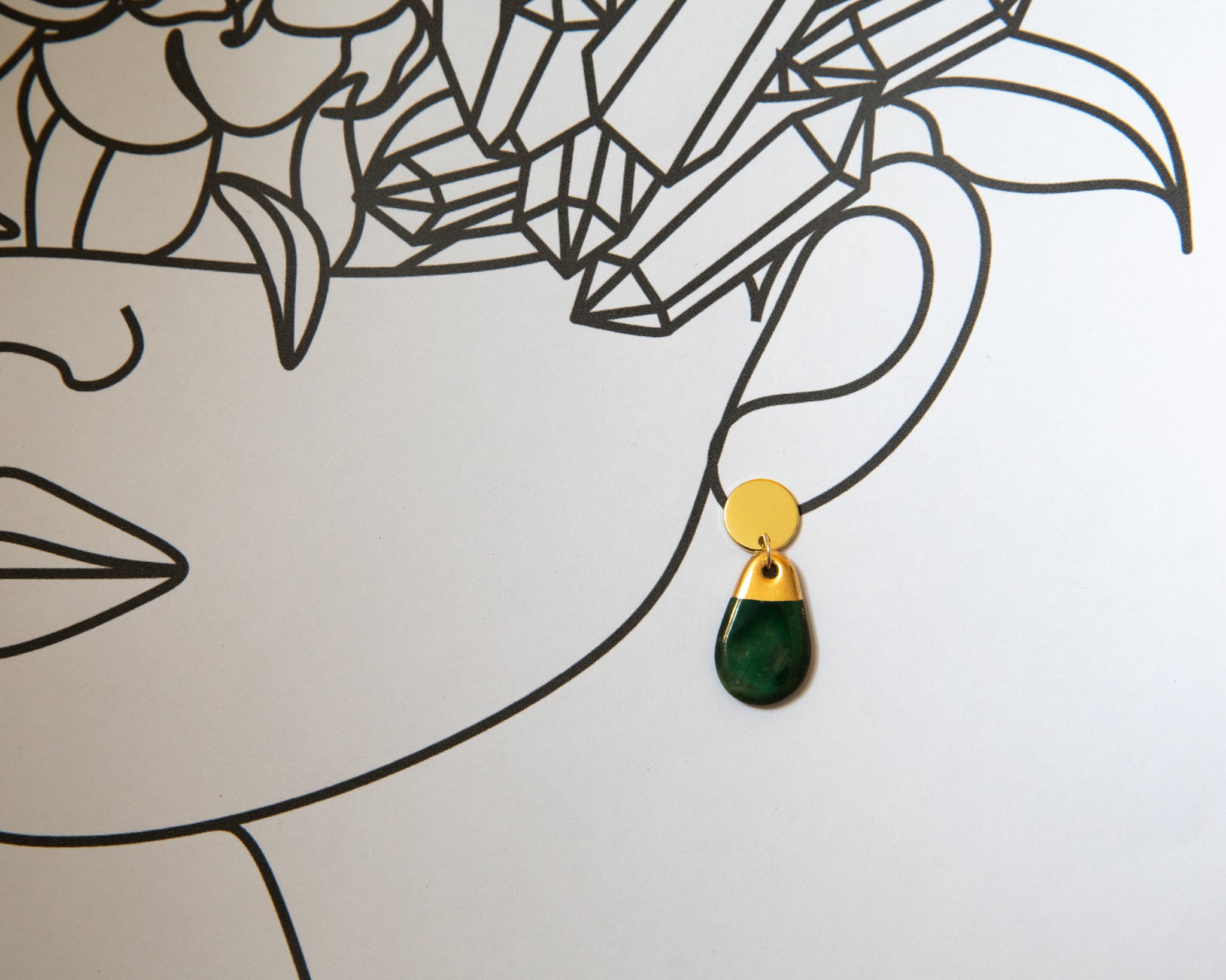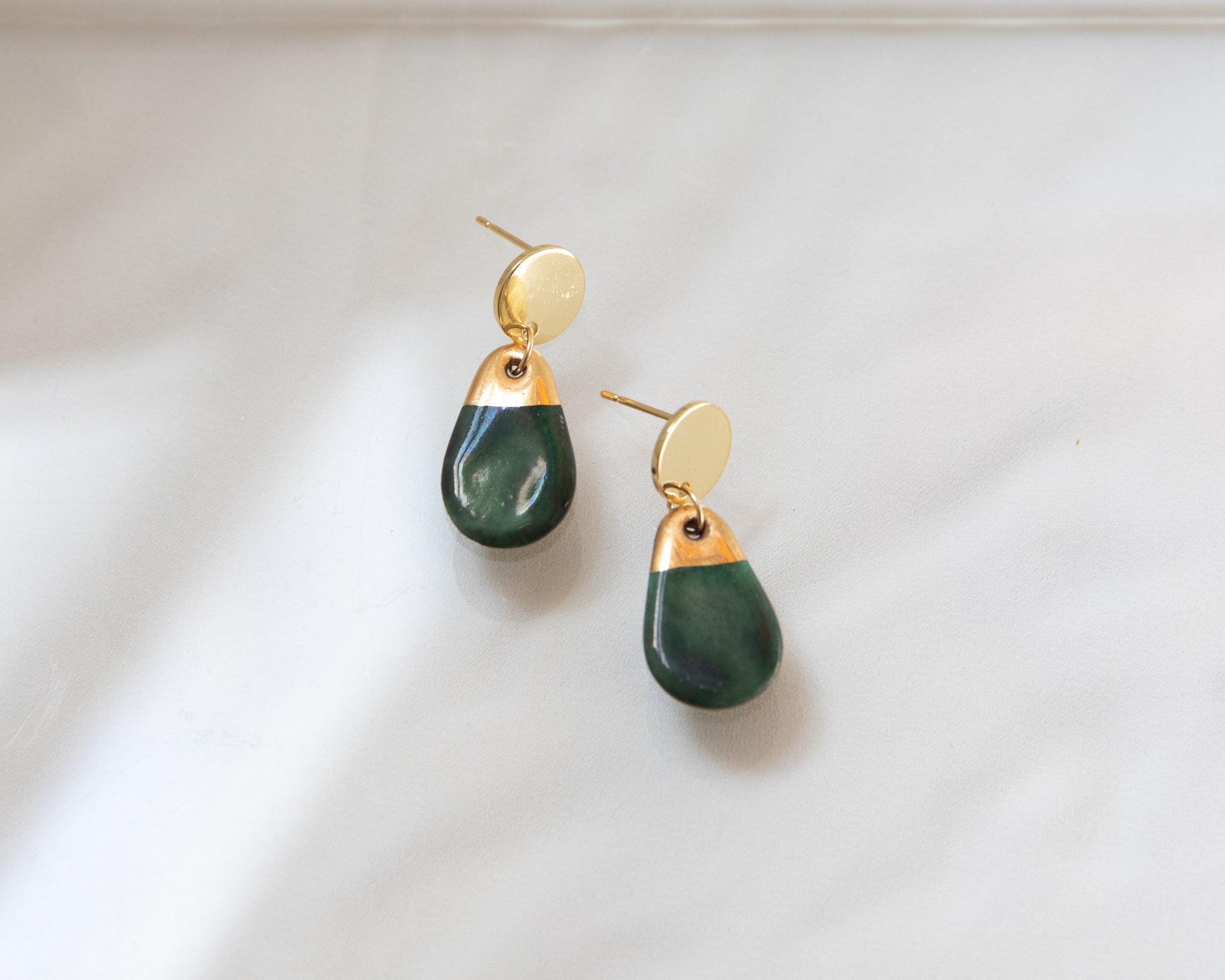 Beautiful porcelain earrings with 22k gold accent. These one of a kind ceramic earrings are extremely lightweight and comfortable to wear. Attached to 14k gold plated ear posts.